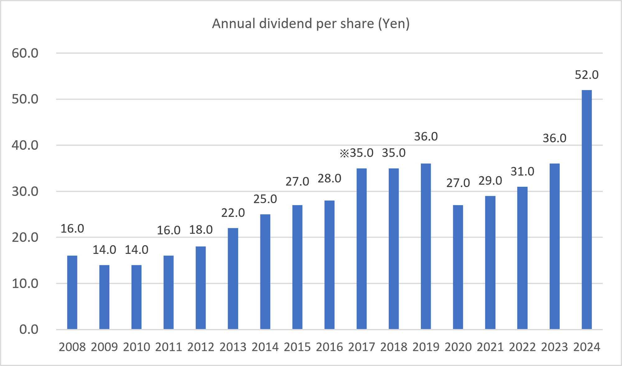 *The dividend for FY2017 includes a commemorative dividend of ¥2.