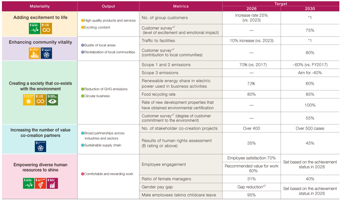 *1. We will consider indicators and targets that can be more closely linked to our business strategy to achieve materiality in our current medium-term business plan.